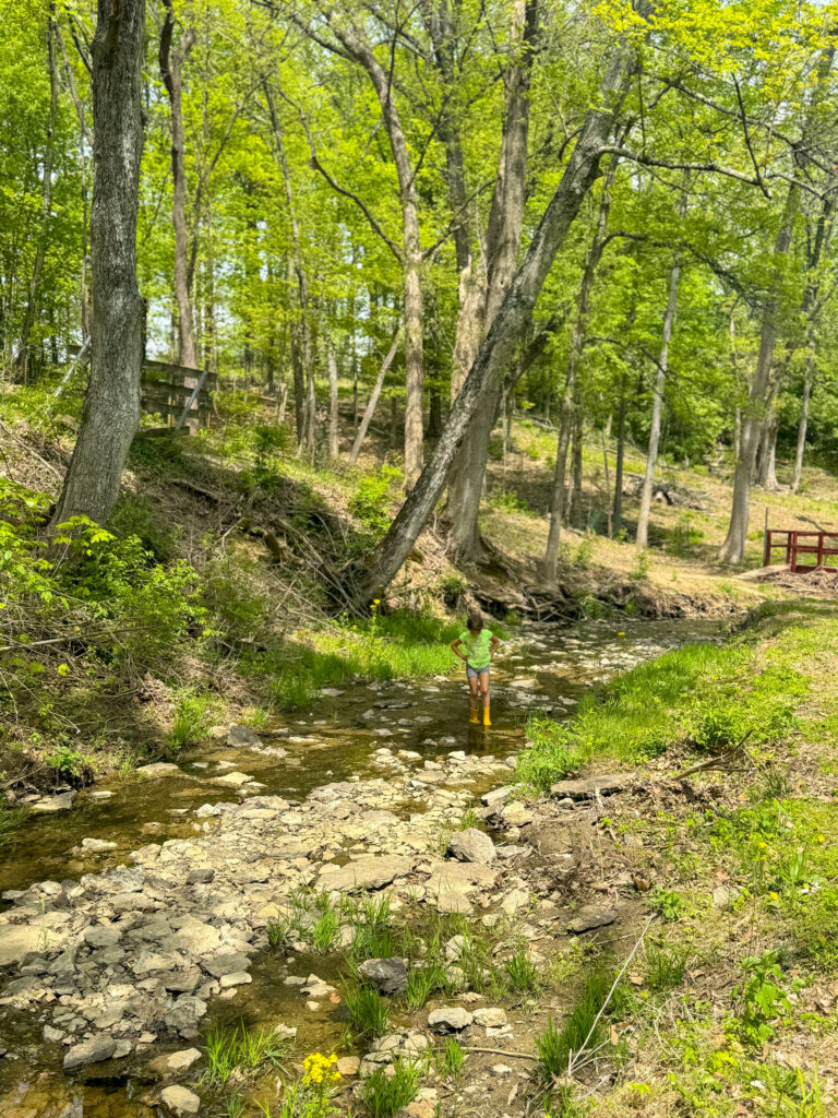 Snaking its way through the Caldwell Nature Preserve is Mill Creek. Many of the hiking trails throughout the park lead to the creekbed and run alongside it. Grab those waterproof boots and hop in the creek to find fossils, clay, and other fun nature treasures. Creeking is always on our warm-weather bucket list. Therefore this makes Caldwell Preserve one of our favorite spots. Also, this is one creek that never seems to be teeming with visitors.